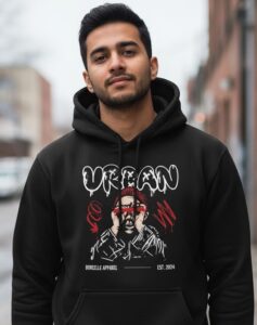 Capture the raw energy of the streets with our “Urban” Graffiti Hoodie. This premium black hoodie is a statement piece, featuring a high-impact graffiti design with bold red and white accents. The custom illustration and “Borcelle Apparel” branding make this a unique addition to your wardrobe. Crafted from a soft, heavyweight fleece blend, it’s perfect for winter, complete with a spacious kangaroo pocket and adjustable drawstring hood. Own your style.